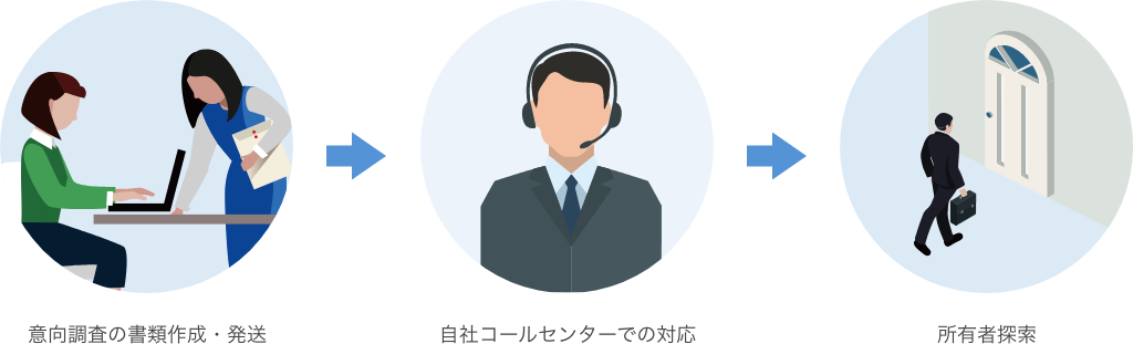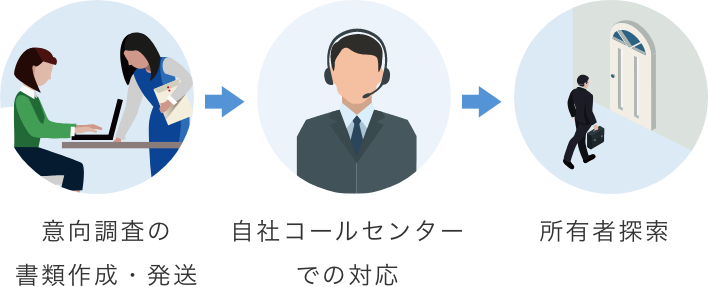 交渉にまつわる様々な業務を一括してサポート。困難物件も自治体さまと同じ⽬線で粘り強く交渉し、信頼をもとに解決へ導きます。