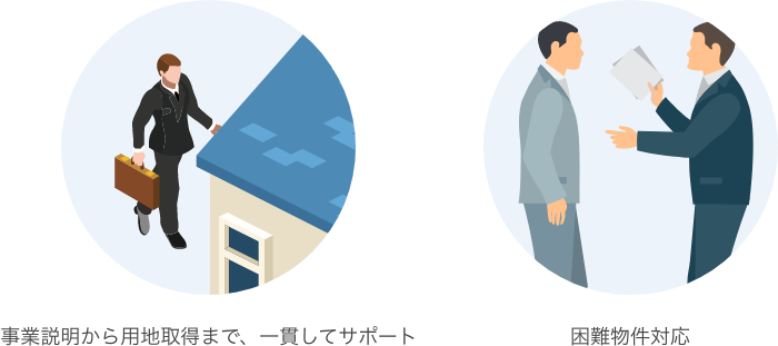 - 事業説明から用地取得まで一貫して対応