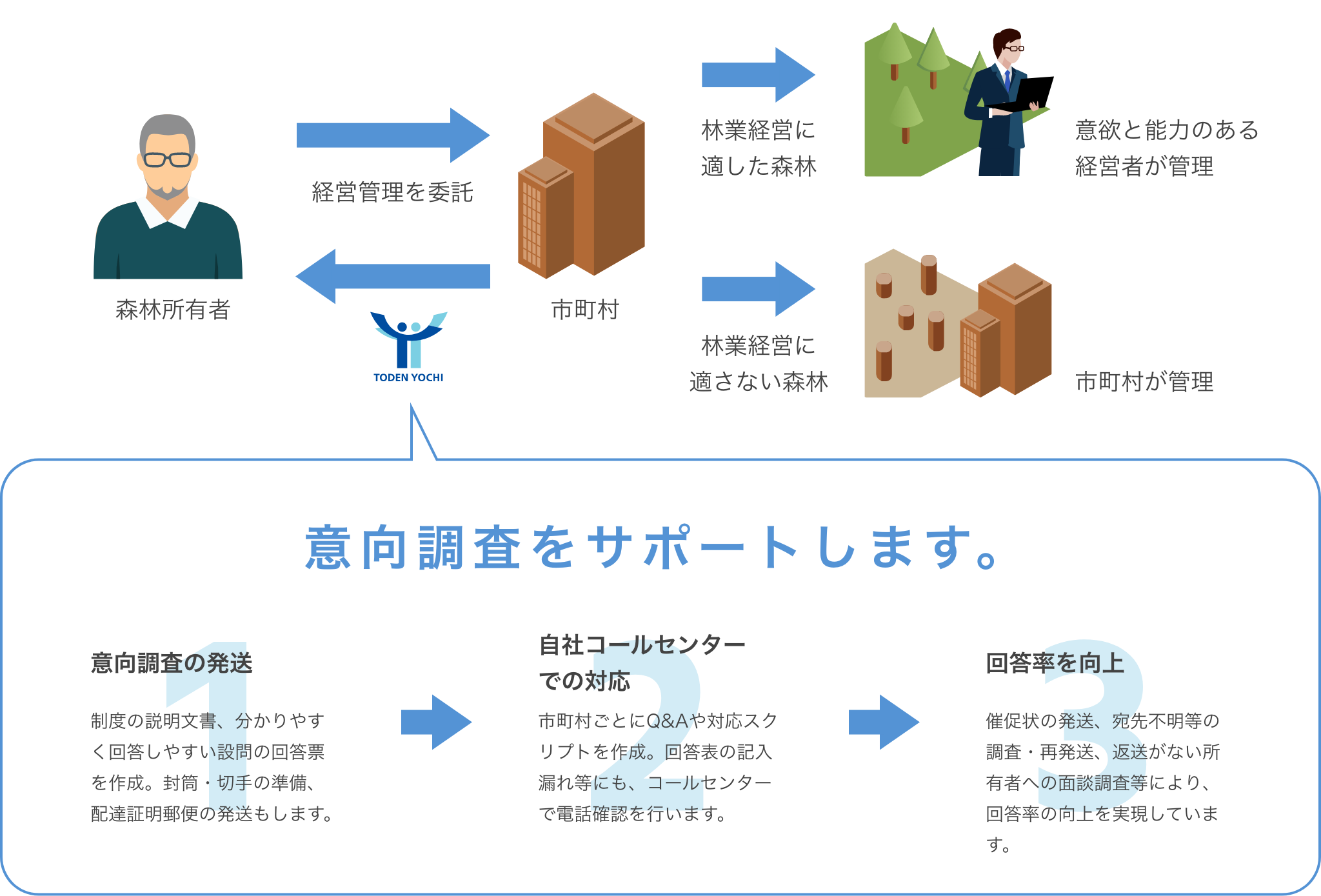 制度のスムーズな導入にとって鍵となるのが森林所有者の意向調査です。